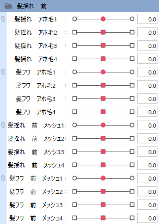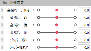 パラメーター画像のとおり、髪の毛を揺らすパラメーターで、数年前は1パーツ1パラメーターだったところを、現在では1パーツ8パラメーター使って、髪の毛のフワフワ感をアップデートしています。