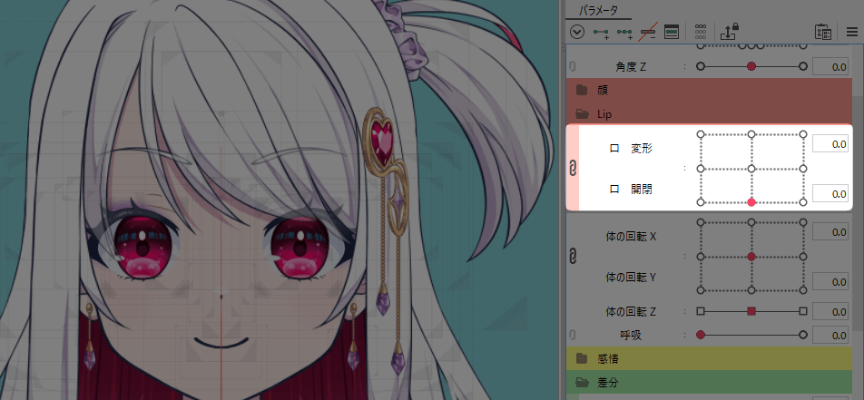 「A~O」の口の形をコピペで作っていくと、各母音パラメーターの0.0~0.1で口が開閉する際に、パーツがはみ出したりしてしまう事がありました。