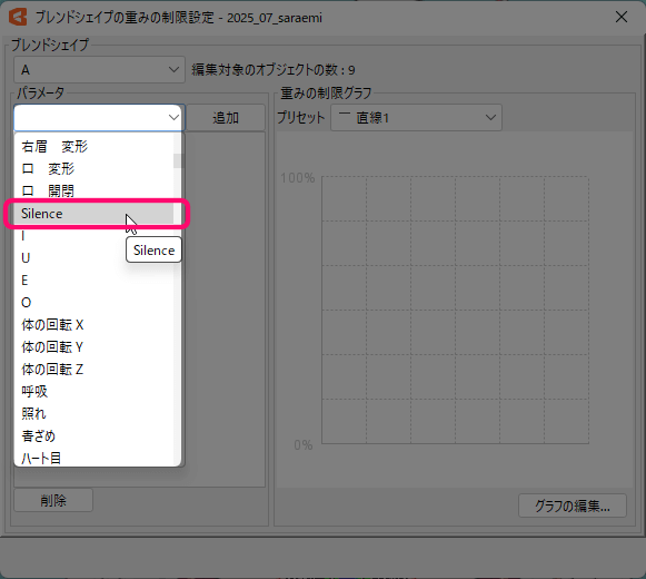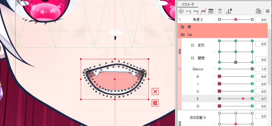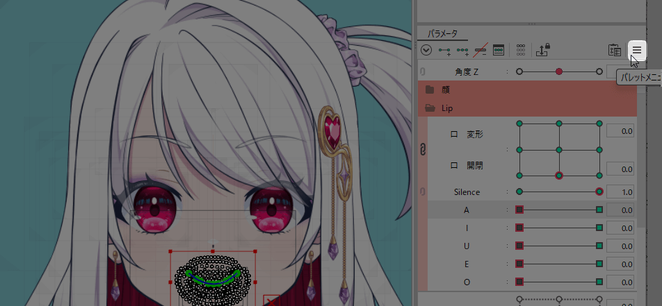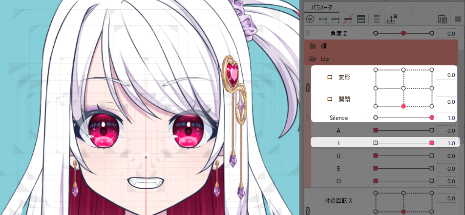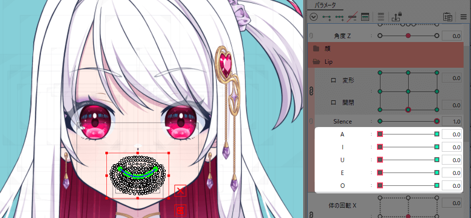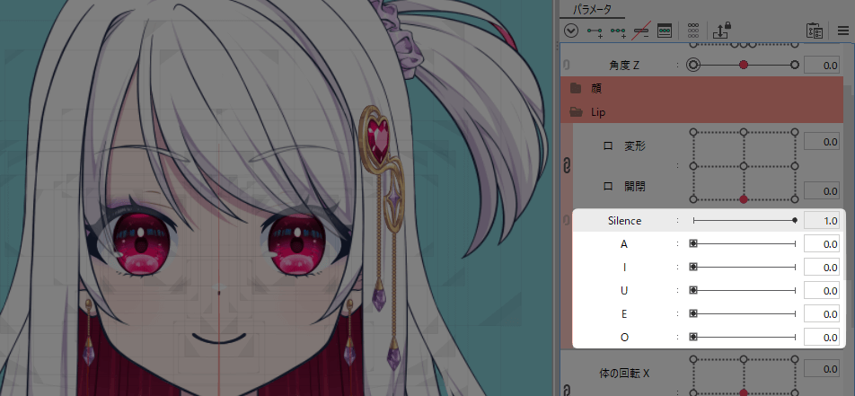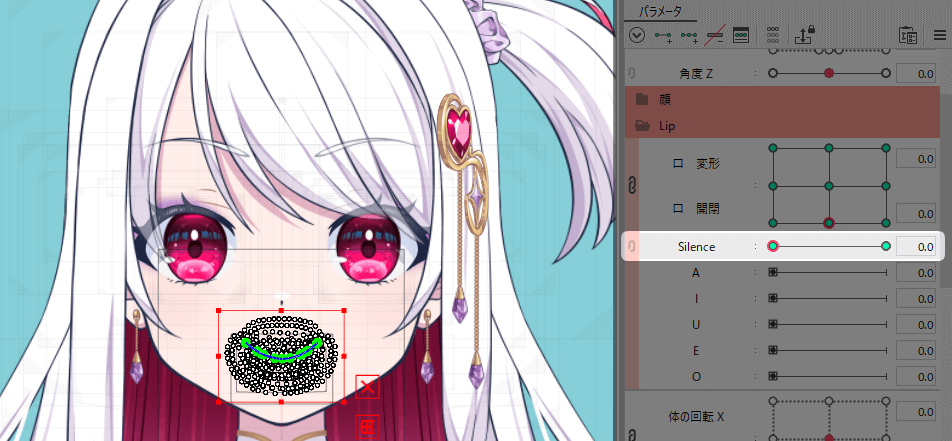口パーツを選択して、Silenceのパラメーターにキーを打ちます。